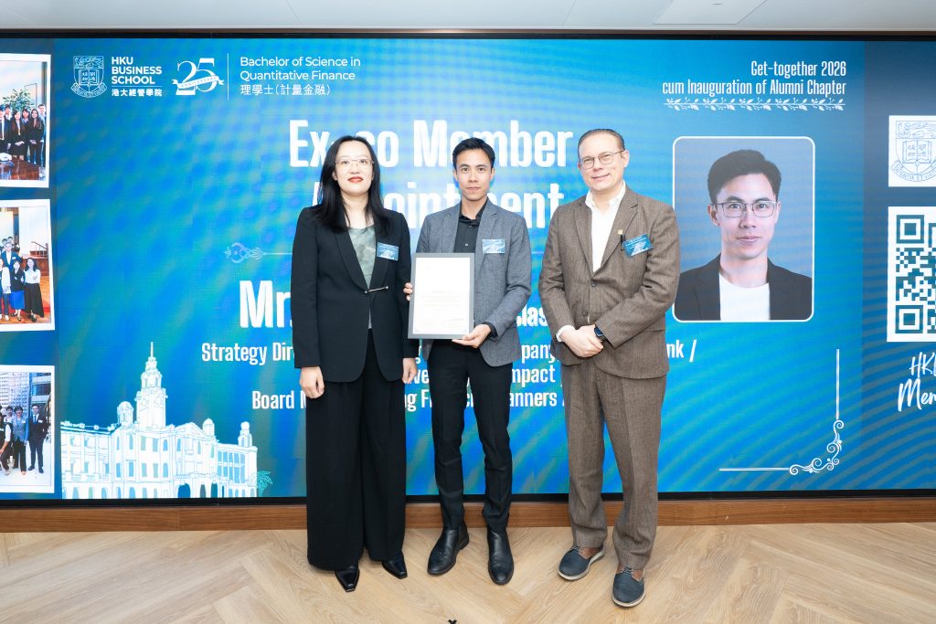 The event also announced the establishment of the BSc(QFin) Alumni Chapter, a new sub‑committee under the HKU Business School Alumni Association. This chapter will strengthen ties among Quantitative Finance graduates, elevate the programme’s profile, and build a supportive network across cohorts and industries. We were particularly honoured to recognise Mr. Keith Yau (Class of 2012; Strategy Director, Hang Seng Indexes Company, Hang Seng Bank) as an Executive Committee member of this inaugural cohort. As the first cohort of the BSc(QFin) student, Keith shared a heartfelt vision for the new Alumni Chapter — rooted in his own early uncertainties and the transformative guidance of his mentor more than 15 years ago. With a growing network of over 300 QFin alumni and 6,000 HKU Business School alumni, he envisions a powerful two‑way channel: students gain real‑world career insights, industry knowledge, and interpersonal wisdom from alumni, while alumni remain energised by students’ passion, fresh perspectives, and evolving skill sets. Through more engagement events and open communication, the Chapter aims to build a stronger, more connected BSc(QFin) community for generations to come.